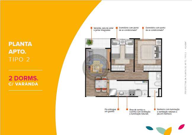 Planta tipo 2 com 43,43M²