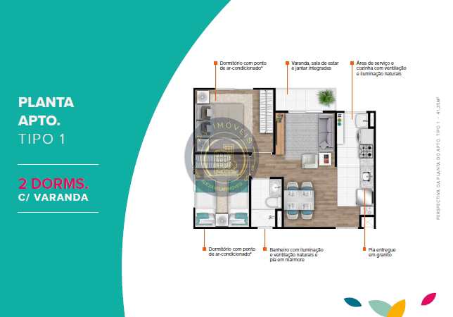 Planta tipo 1 com 41,35M²